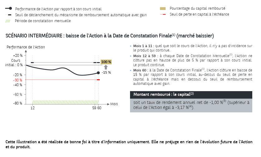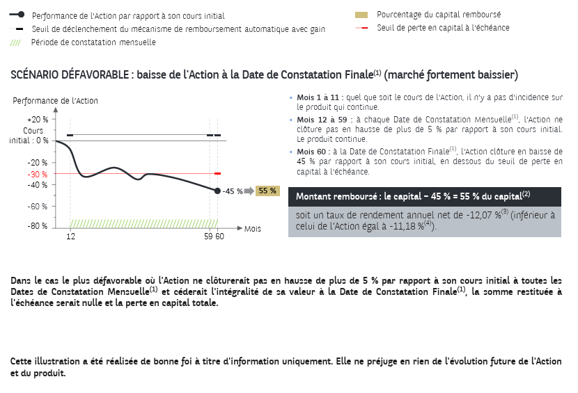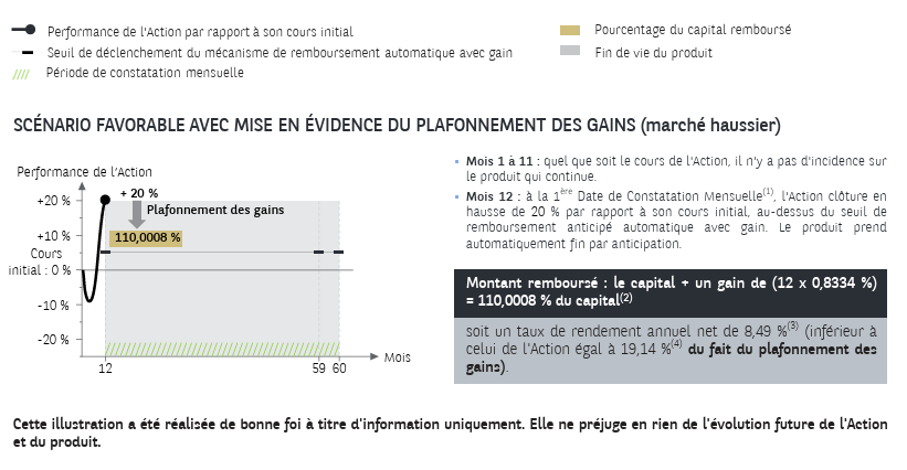 BNP Paribas S.A. Bien que la formule de remboursement du produit soit garantie par BNP Paribas S.A., le produit présente un risque de perte en capital à hauteur de l’intégralité de la baisse enregistrée par l’Action. |