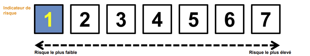 Nous avons classé ce produit dans la classe de risque 1 sur 7, qui est la classe de risque la plus basse. Autrement dit, les pertes potentielles liées aux futurs résultats du produit se situent à un niveau faible et, si la situation venait à se détériorer sur les marchés, il est très peu probable que notre capacité à vous payer en soit affectée.