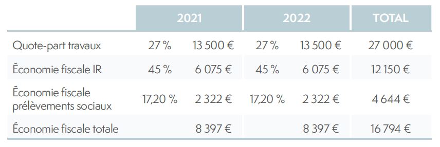 Quote-part cible de travaux : 27 000 € (54 %)